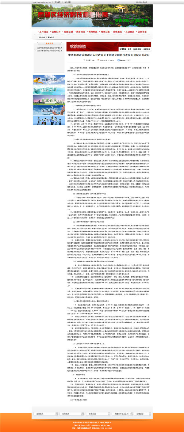 雨湖區(qū)經(jīng)濟(jì)科技信息化局網(wǎng)站文章終顯頁效果圖
