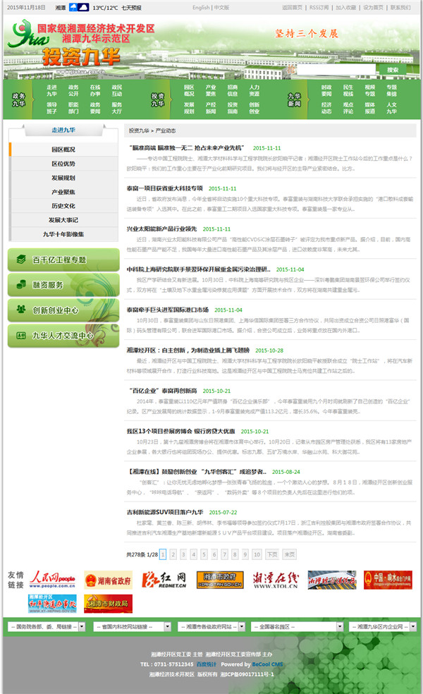 投資九華的主要欄目有:園區(qū)概況、產(chǎn)業(yè)聚焦、招商信息、人力資源、發(fā)展規(guī)劃、產(chǎn)經(jīng)新聞、投資指南和創(chuàng)新創(chuàng)業(yè)。