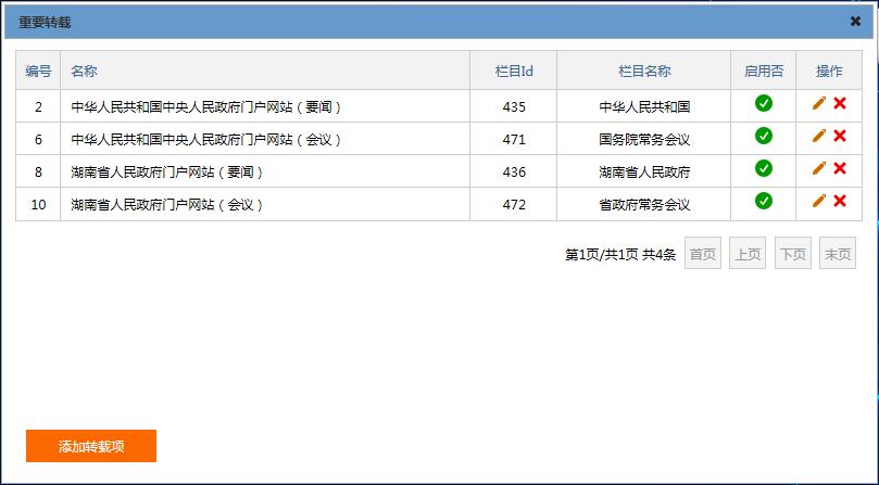 此功能為政府類黨政機關單位官方網(wǎng)站必備功能,定時對上級(國務院、省政府等)指定欄目的文章進行轉載,