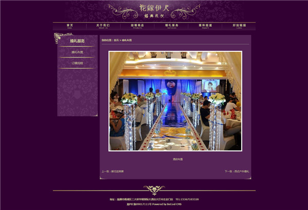 該網站的主要欄目有:關于我們、結婚商品、婚禮服務、媒體報道和好站鏈接。
