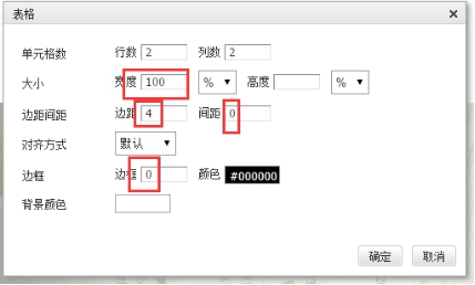 1) 選預計好文章中需要并排的圖片的多少,添加相應行數(shù)和列數(shù)的表格。在表格屬性中如下圖中設置數(shù)據(jù)。