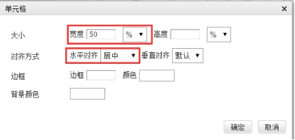 2) 雙圖并排時,將放圖的兩個單元格各自設置好寬度為50%,高度自動。對齊方式選擇居中。如下圖。
