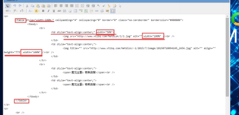 3) 在單元格中插入圖片后,將圖片設置大小,寬度為100%,高度自動。