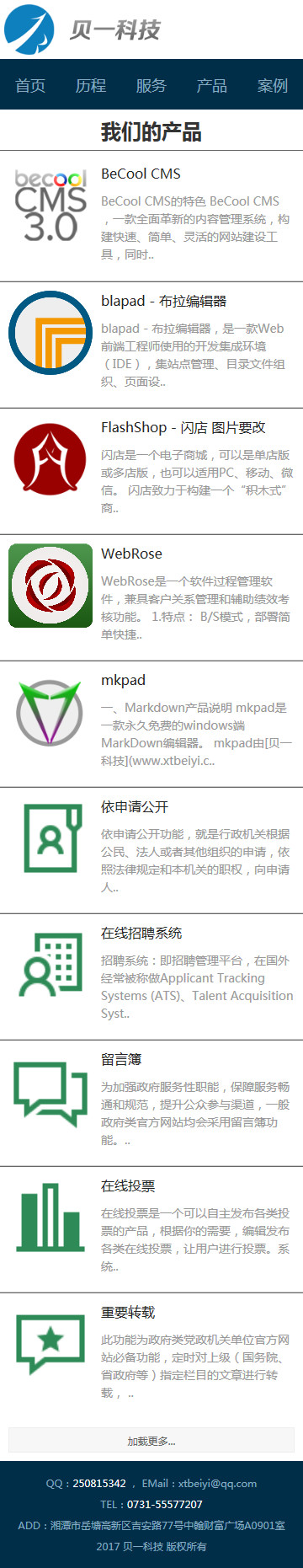 貝一科技微官網(wǎng)產(chǎn)品列表頁效果圖
