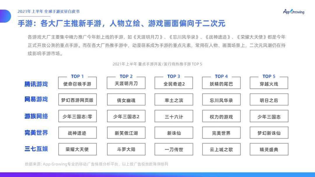 二次元手游熱推榜前20中,共有11款新投放手游上榜,嗶哩嗶哩今年在手游上的投入比較大,也開始出現(xiàn)熱衷買量。
